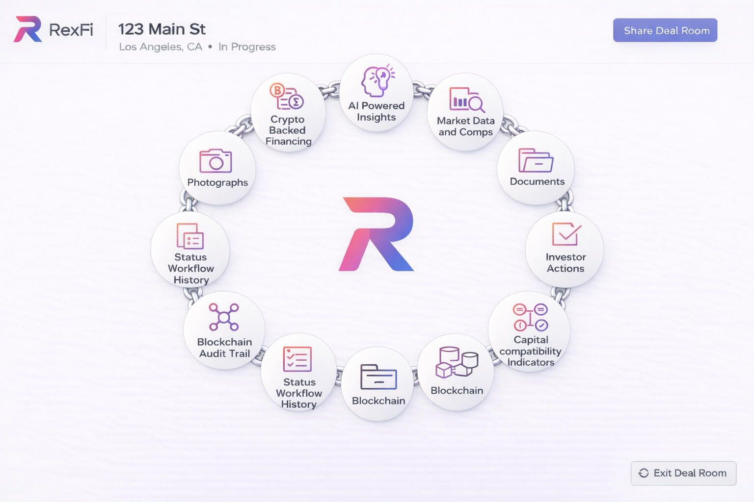 RexFi Global brings all the essential information needed to close a commercial real estate deal—documents, data, communication, and next steps for the property you choose—and brings it into ONE deal room. This turns fragmented due diligence into a clear workflow. RexFi Global is not just a listing site; it’s a transactional one-stop shop.
